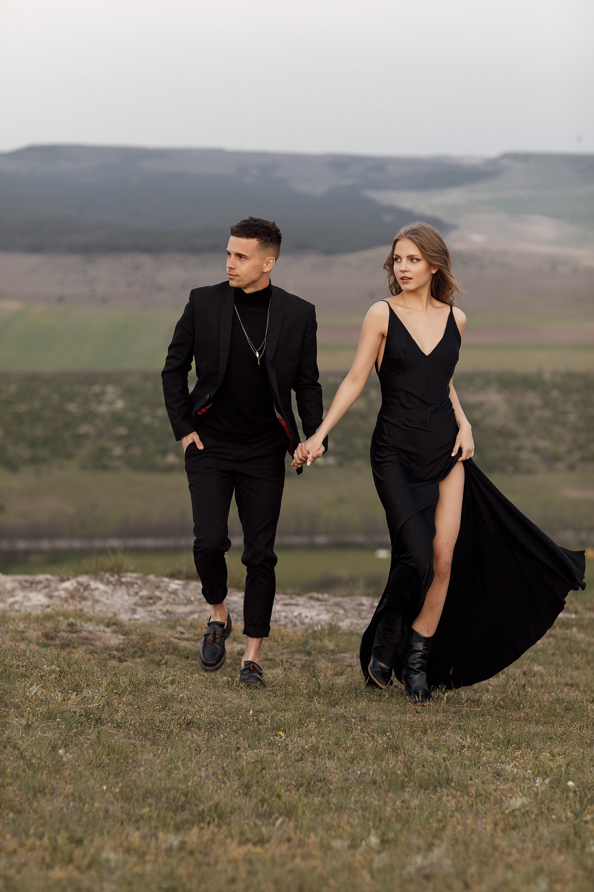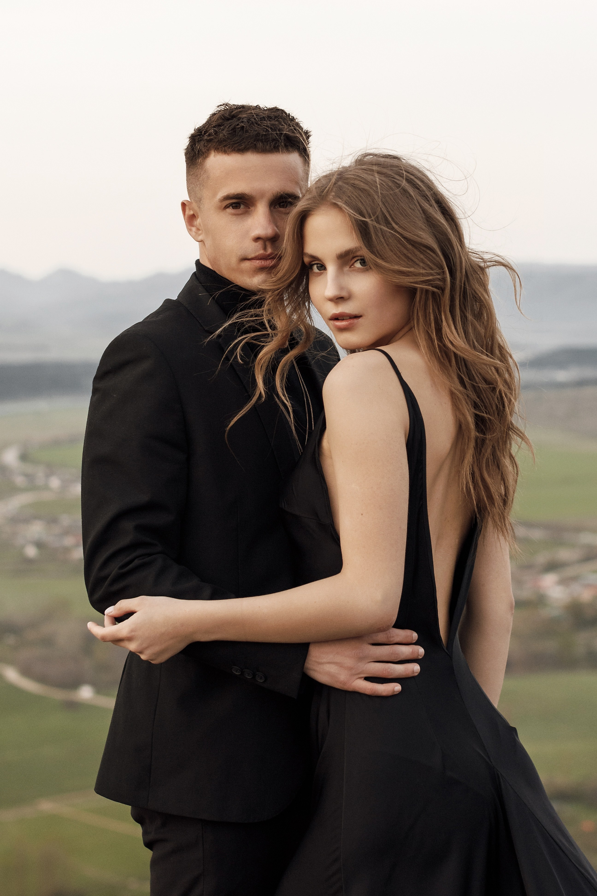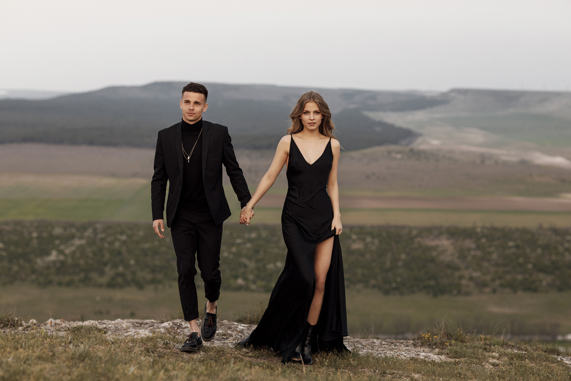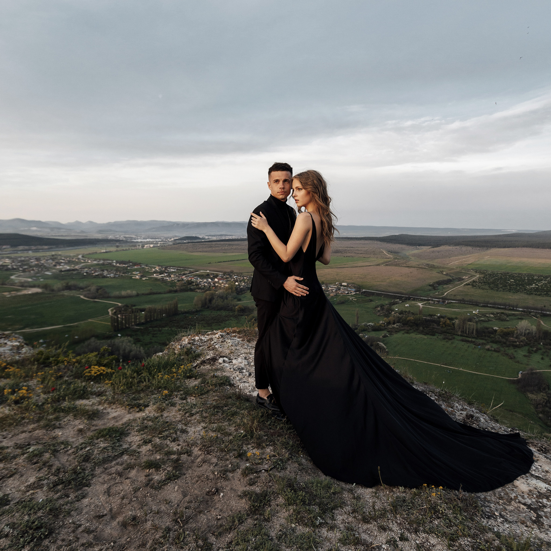 Это была смелая свадьба, полная силы, страсти и гармонии с природой. Молодожёны выбрали для своей фотосессии величественные пейзажи, где бескрайние поля и скалы стали символом свободы и вечности их чувств. Чёрные наряды добавили особой глубины — контраст нежности и дерзости, любви и силы, мягкости и уверенности.