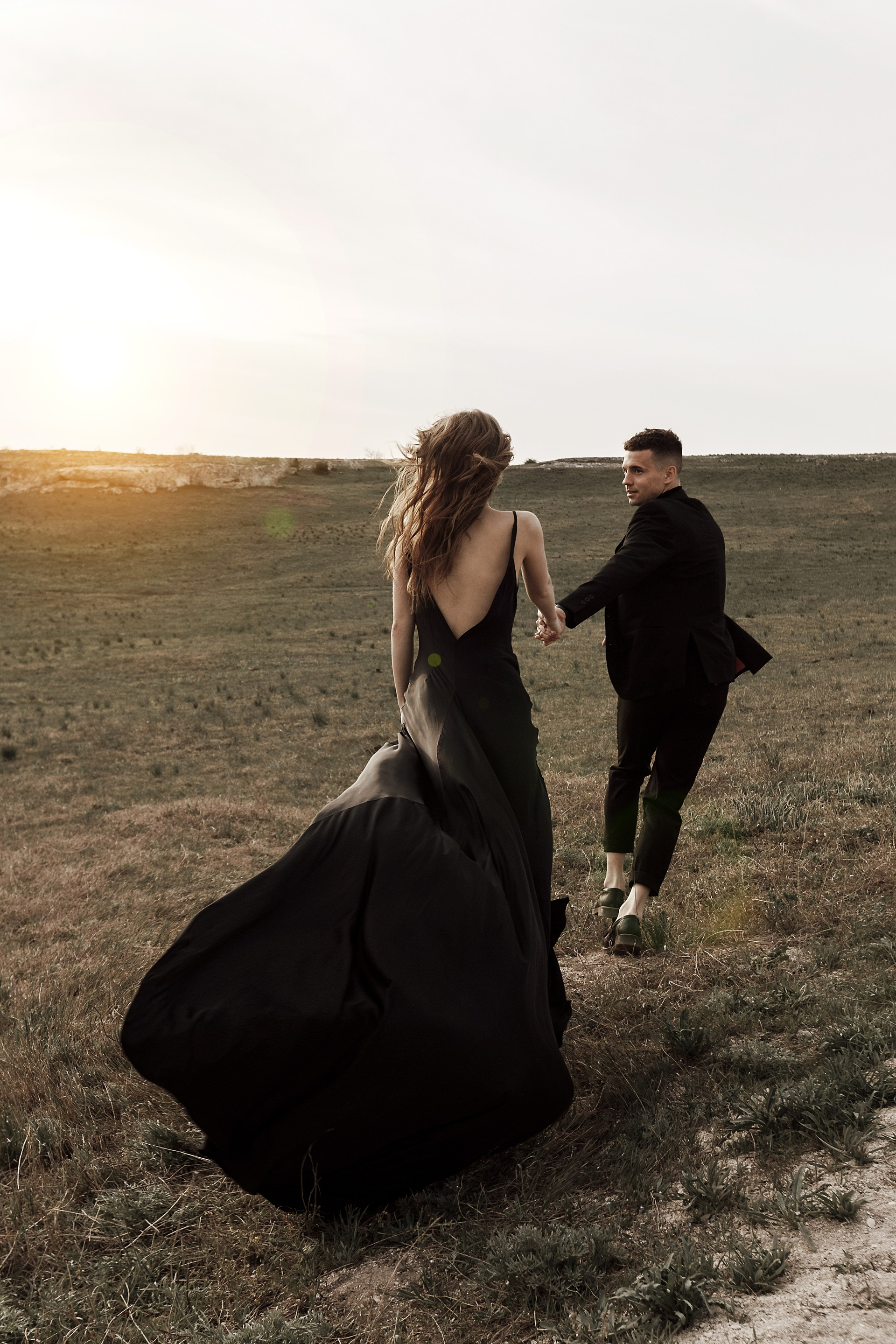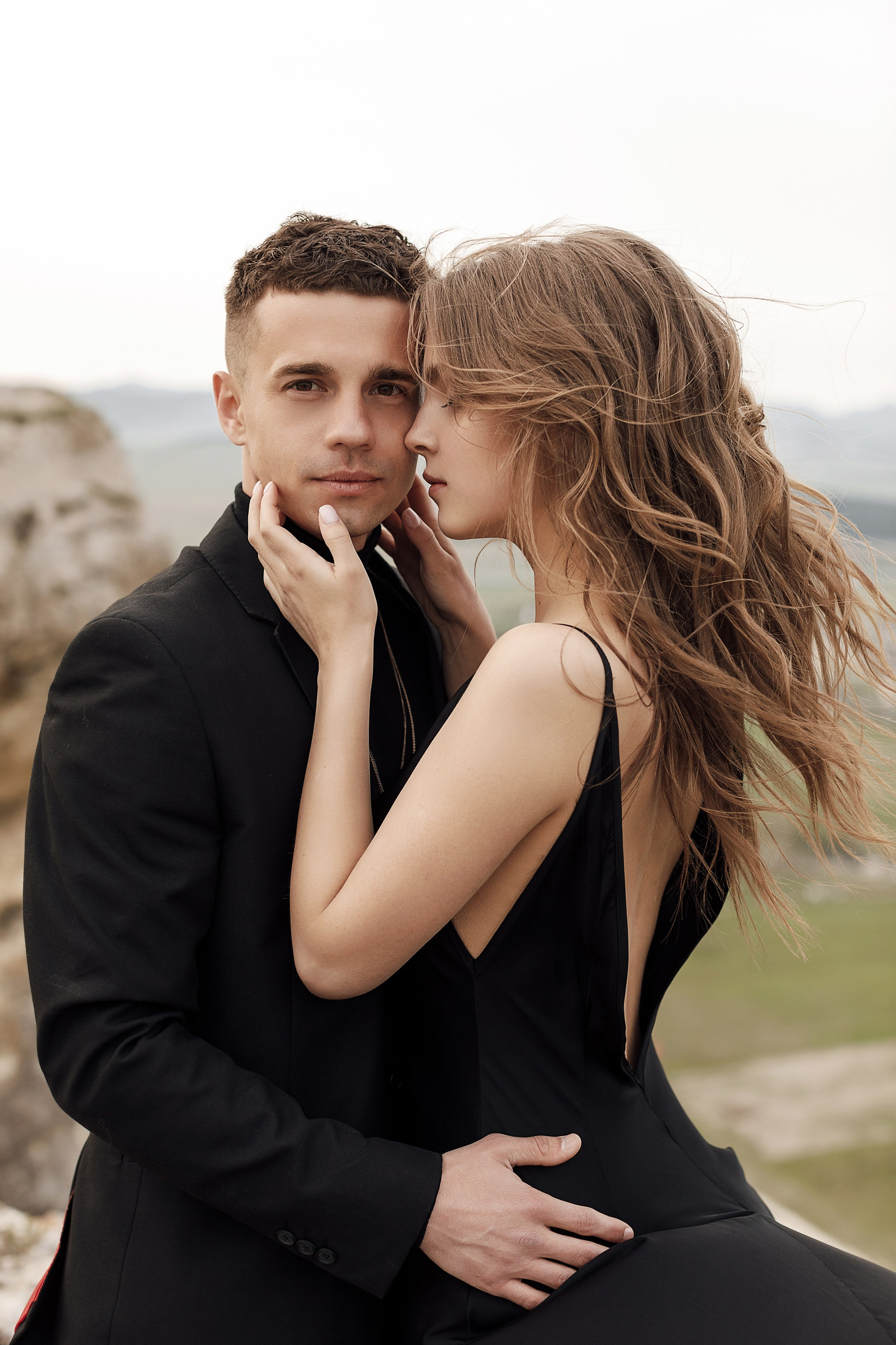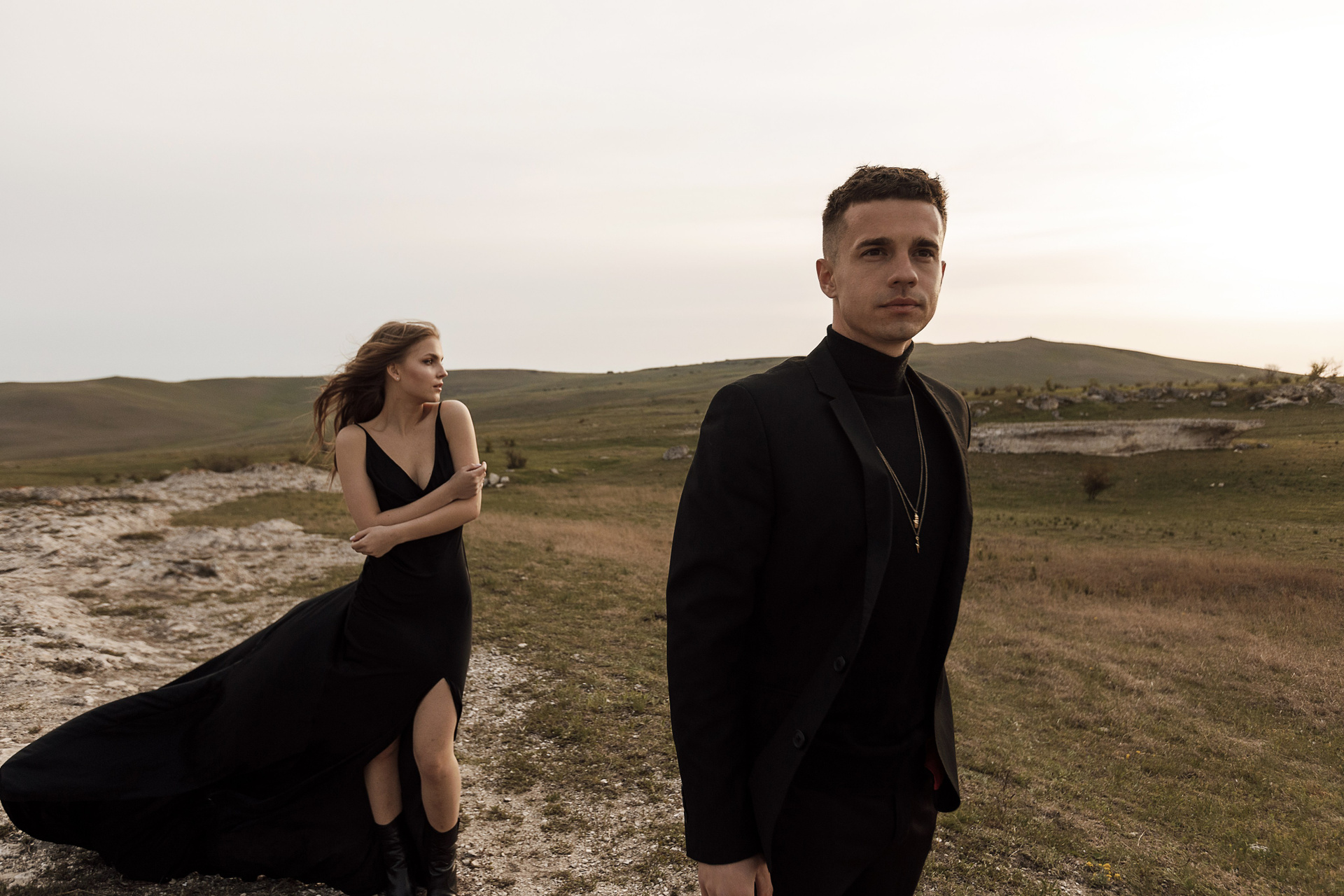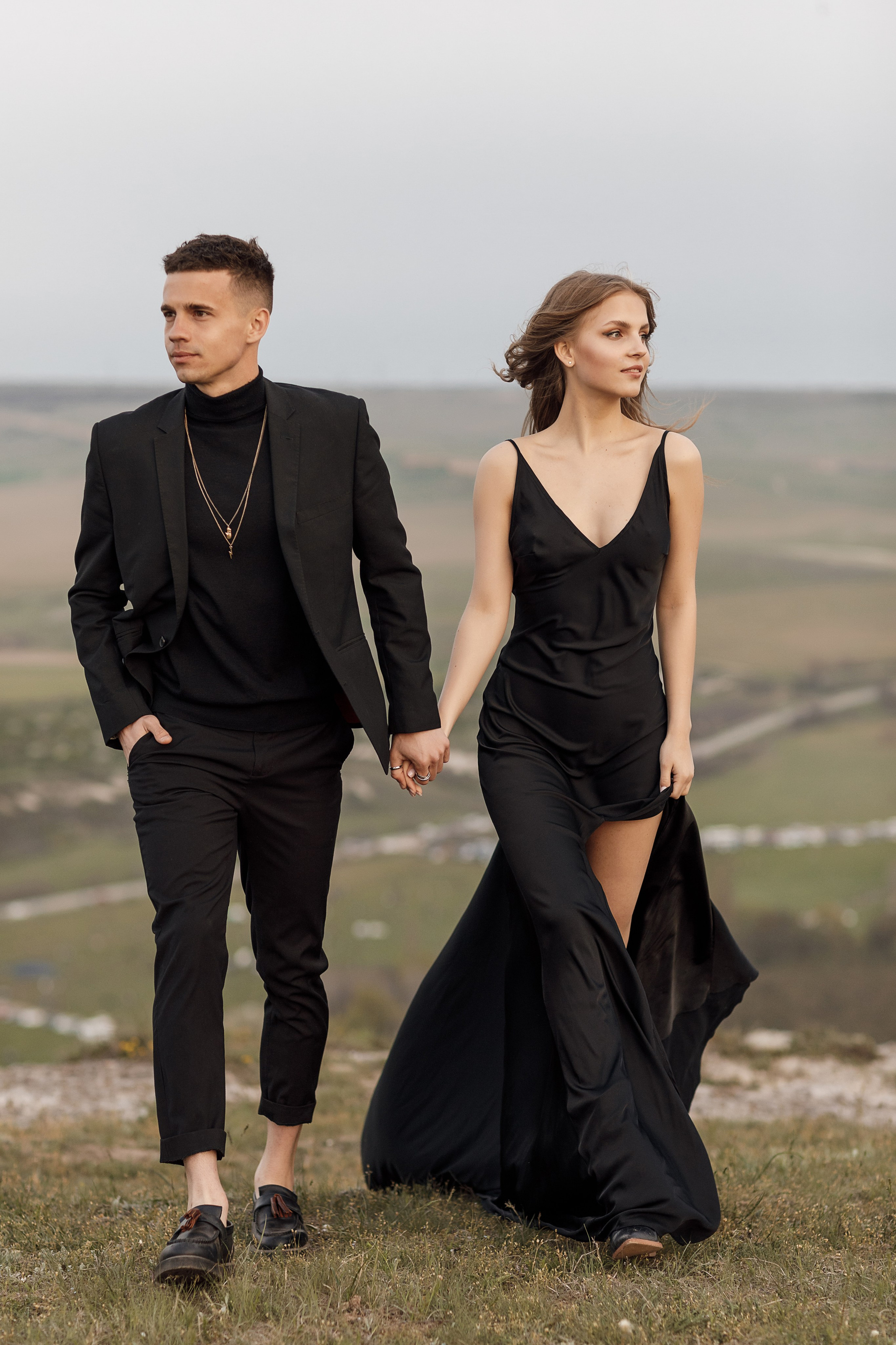 Это была смелая свадьба, полная силы, страсти и гармонии с природой. Молодожёны выбрали для своей фотосессии величественные пейзажи, где бескрайние поля и скалы стали символом свободы и вечности их чувств. Чёрные наряды добавили особой глубины — контраст нежности и дерзости, любви и силы, мягкости и уверенности.