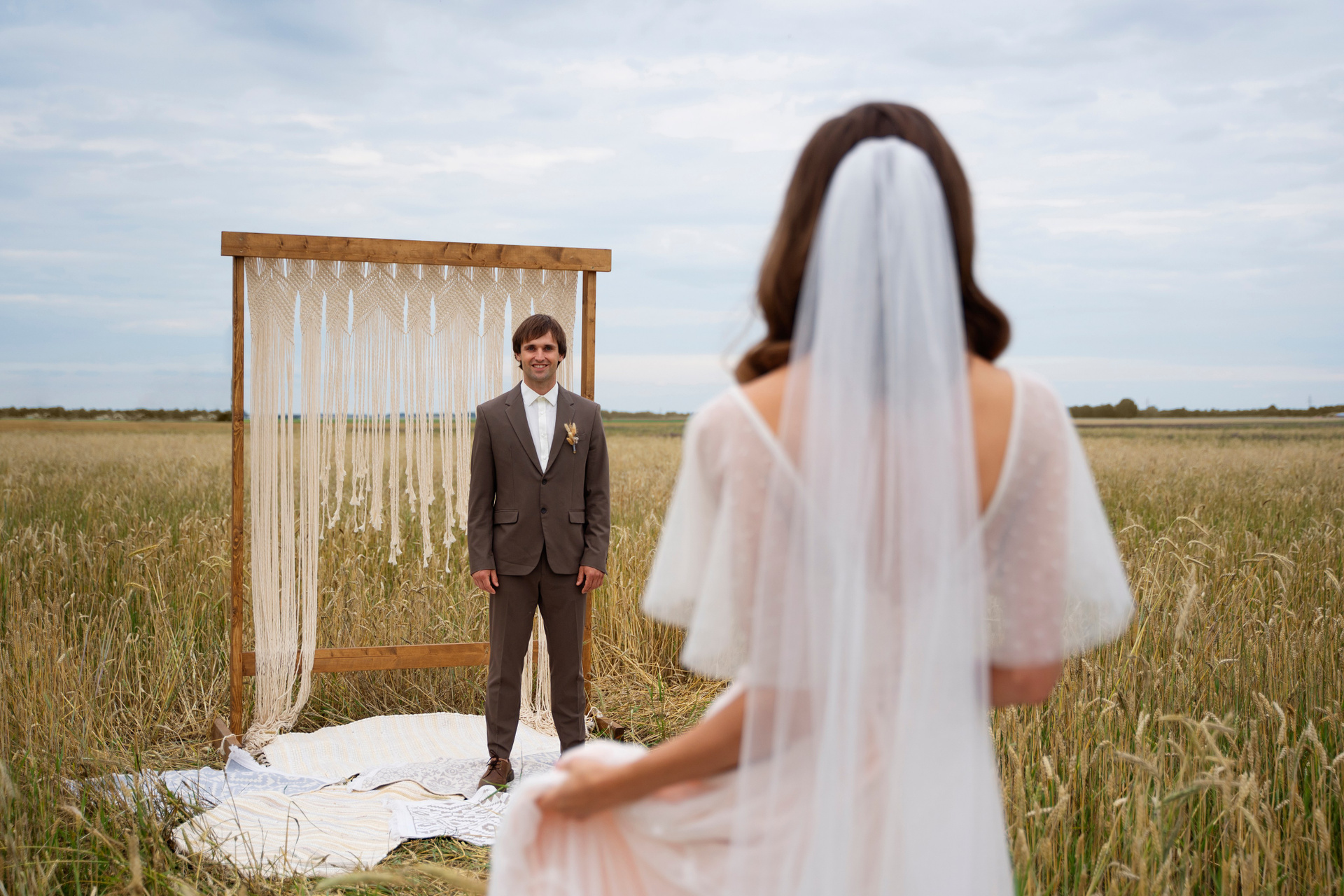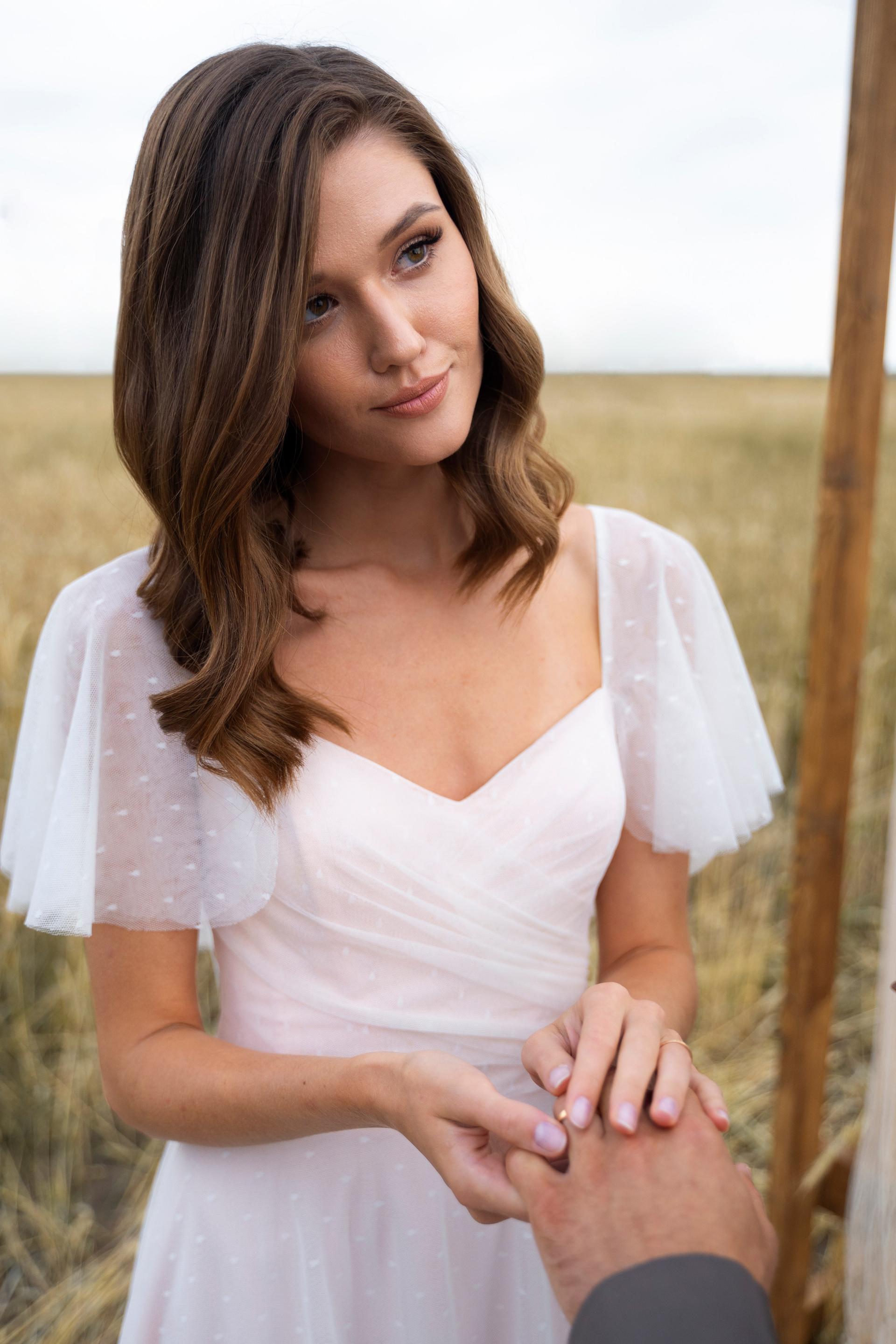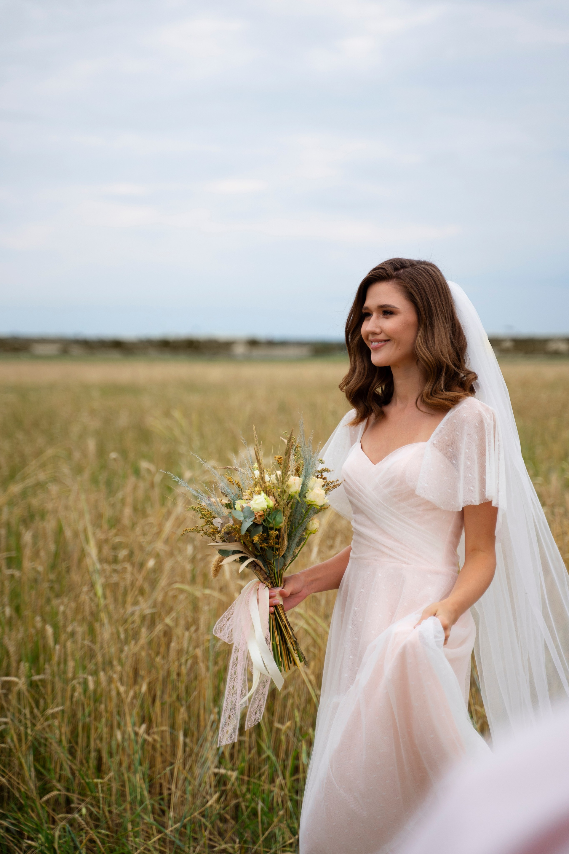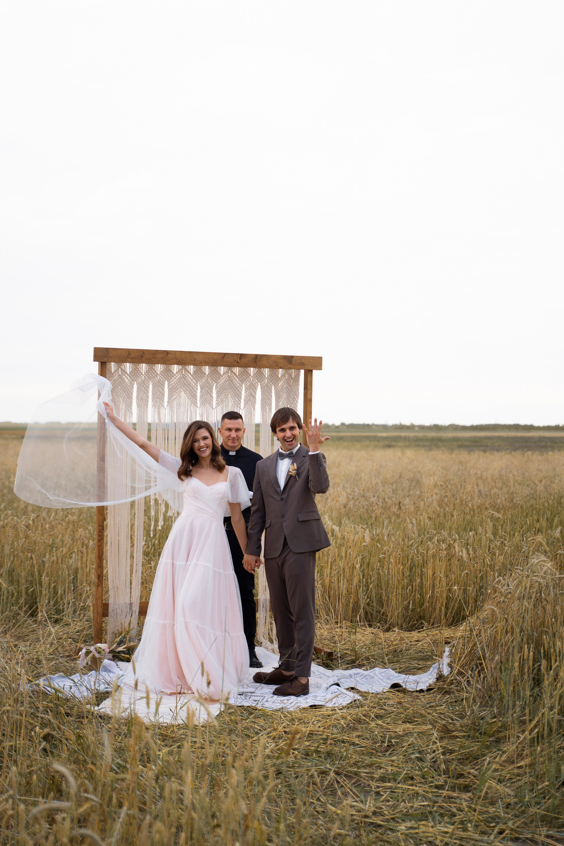 Эта свадьба — о настоящей нежности и гармонии. Просторное поле, колосья пшеницы и лёгкий ветер стали самой искренней декорацией для истории двух сердец. Здесь нет пафоса — только любовь, свет и спокойствие природы вокруг.